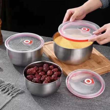 ১ সেট টোটাল ৩ টি বাটি ১ সাথে পাচ্ছেন ঢাকনা সহ স্টিল ফুদ গ্রেড ৩০৪