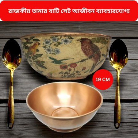 2 পিস বাটি Yellow এবং 2 পিস বড় Steel Golden চামস (100% Copper) Bowl 19 Cm (1 পিস প্রিন্ট 1 পিস প্রিন্ট ছাড়া)